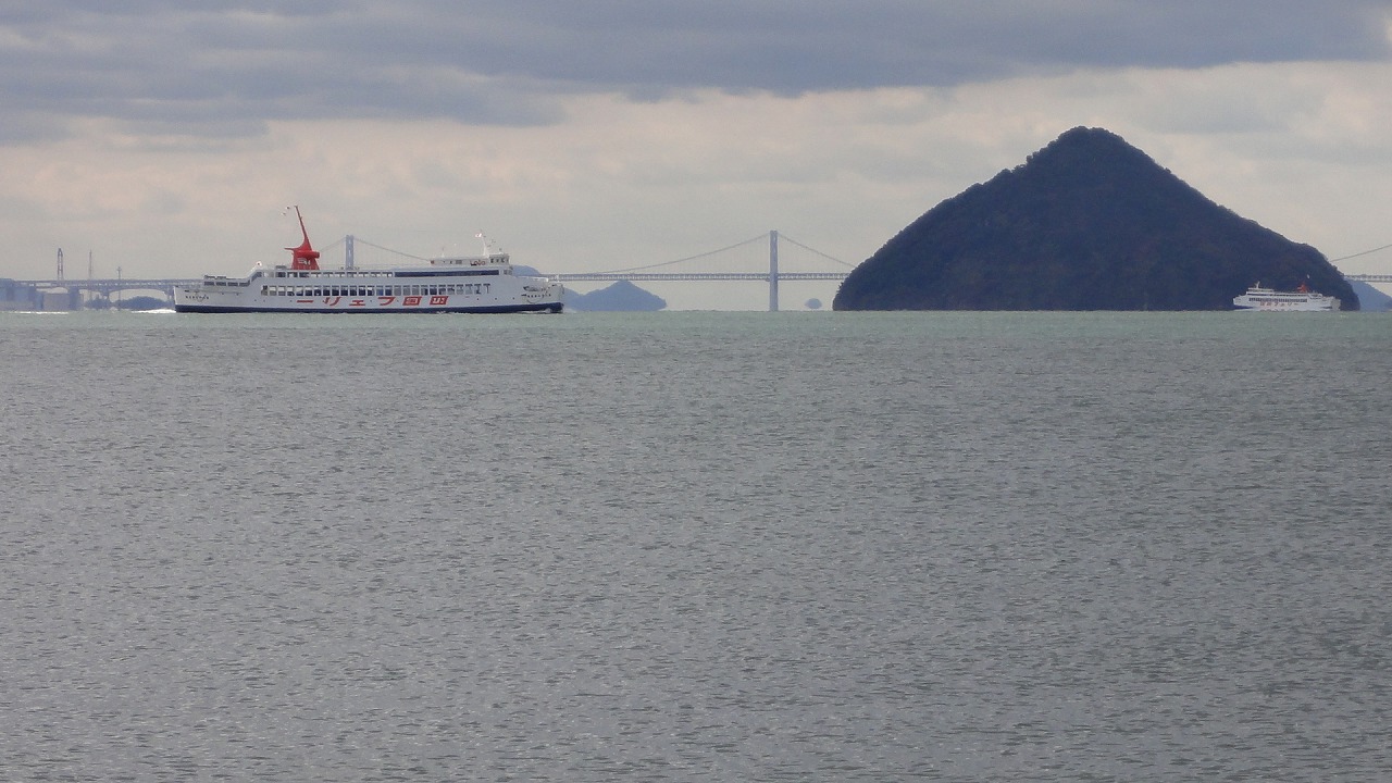 これに合成写真の船を入れ、瀬戸大橋をCGで消したようですね。